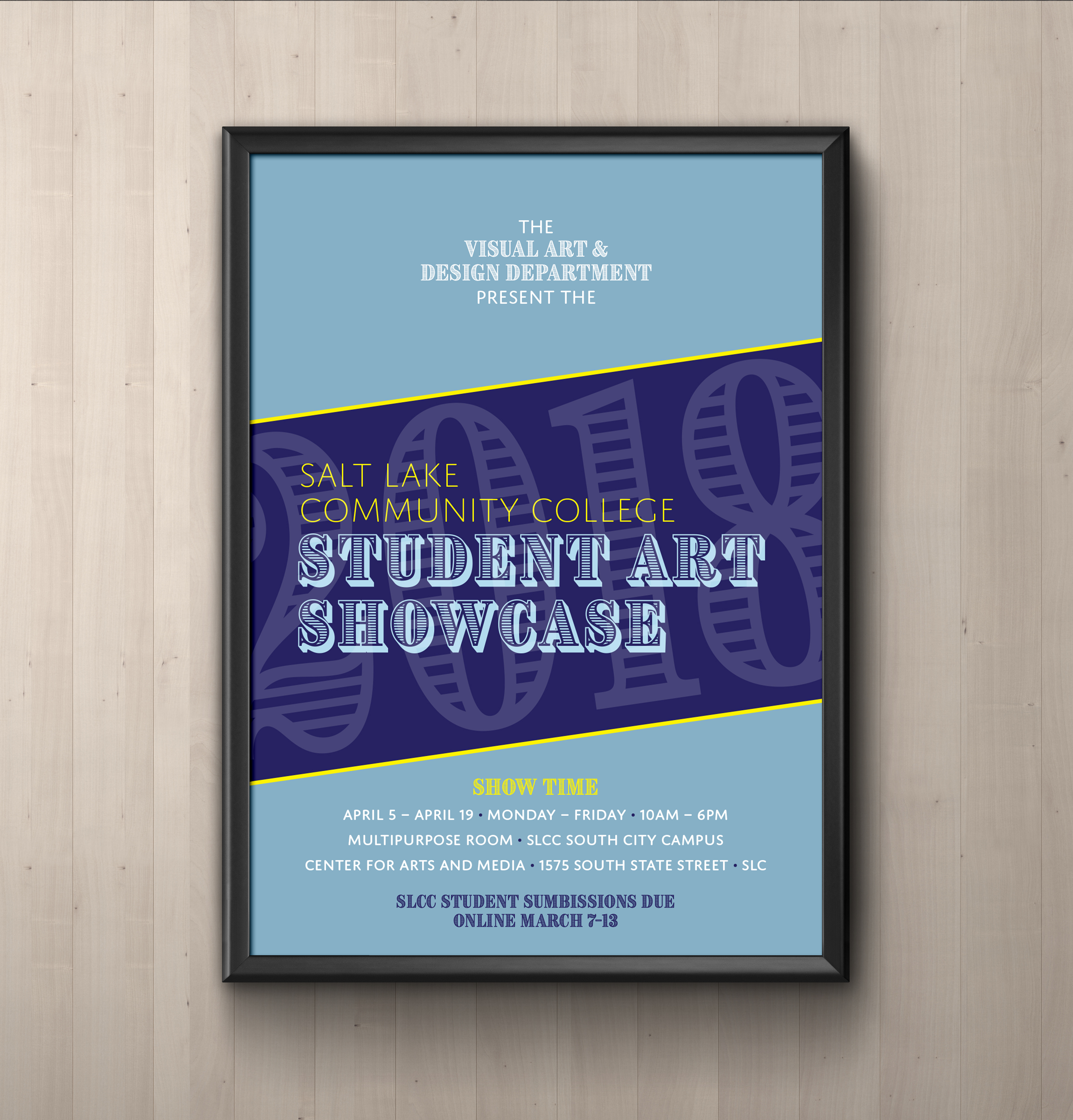 My submission for the college Art Show. It needed to list all pertinent information that students would need in order to submit their work and attend the show. It also needed to draw attention to itself amidst other posters and ads within the campus.
